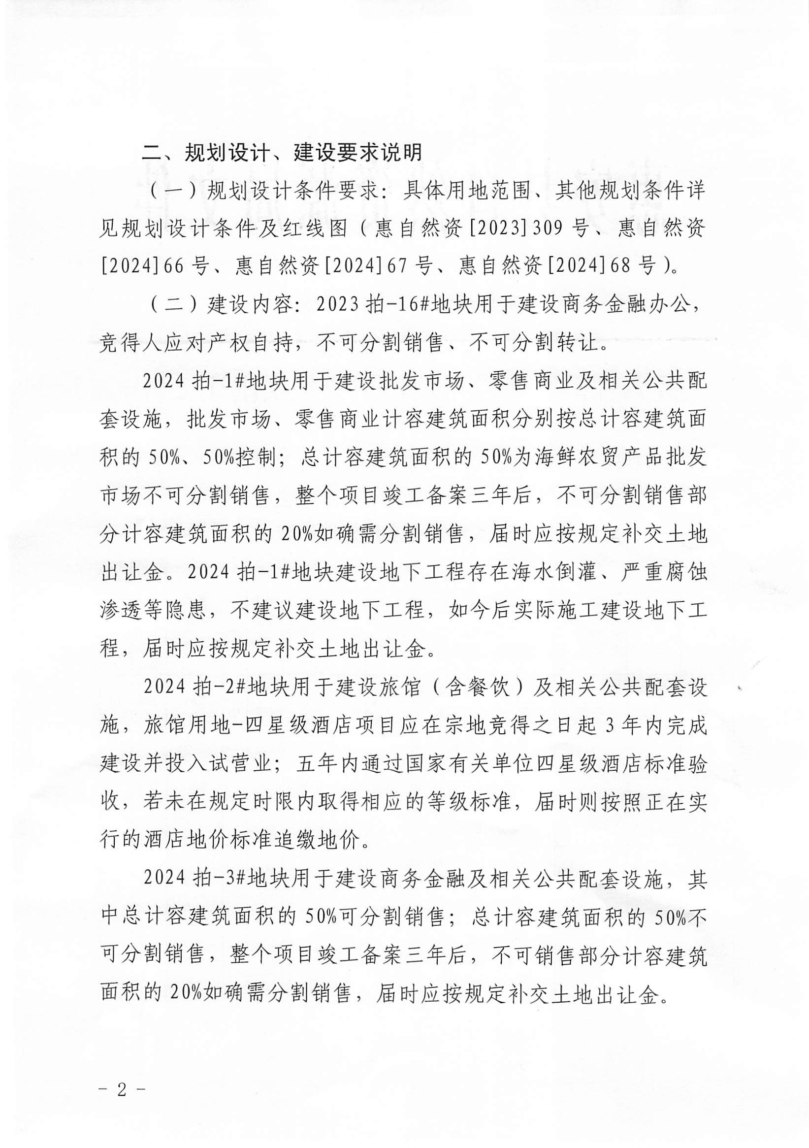 經營性國有建設用地使用權拍賣出讓公告(惠自然資告〔2024〕15號)